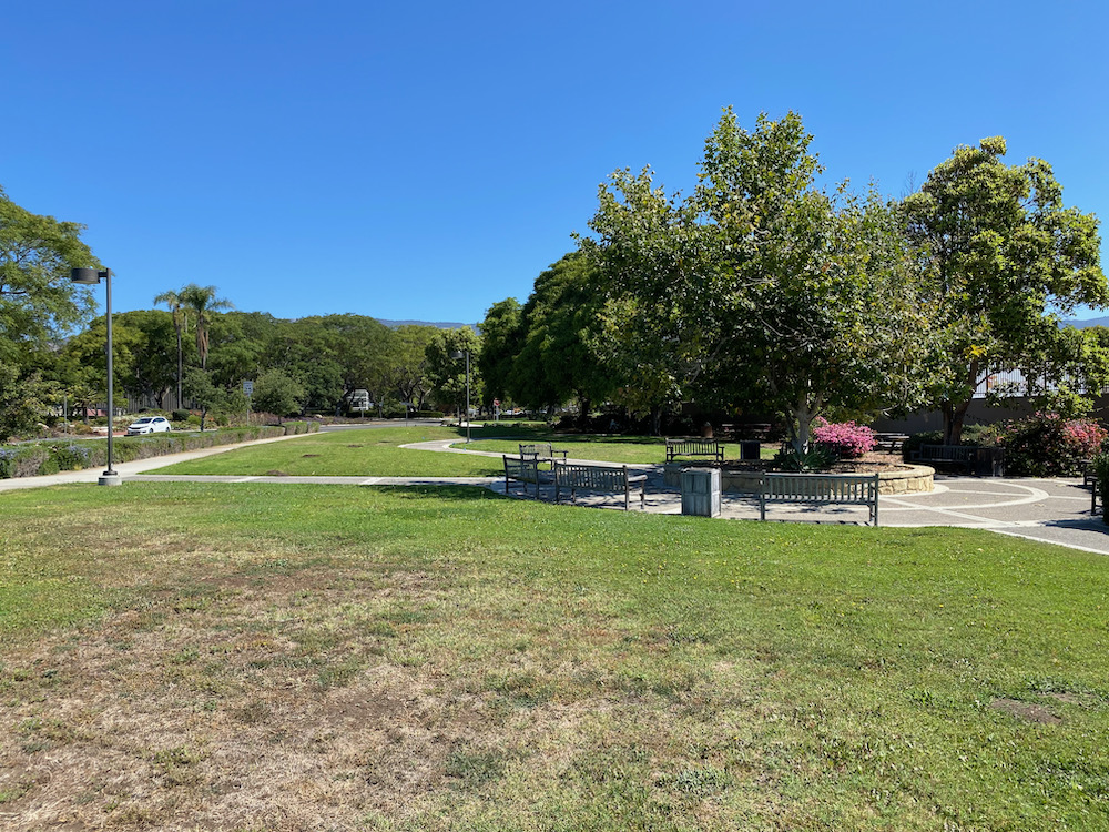 On the west side of Direct Relief is a nice enough park, presumably a concession made by the organization in order to build such a hulking mass.