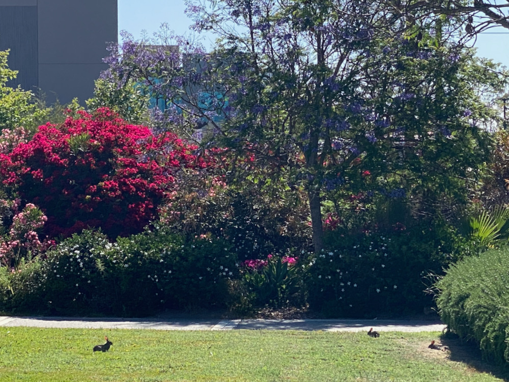 On the area’s western edge are a couple of more professional buildings, including outposts of Southern California Edison, which has the best trees around, and the California Department of Justice. (Hence the po-po, I guess.)