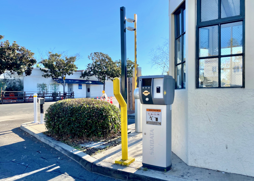According to a division supervisor, the testing has been going on for about a month at various lots. I thought the city might also be looking for parking or even moving violations, but the supervisor said that this is just one more move toward touchless payment—in other words, your fee will automatically be calculated without you having to take or redeem a ticket, the way it is at the Paseo Nuevo lot. (Although one certainly imagining the police demanding access to the information.) [See the update below.]