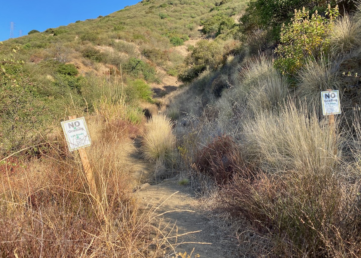 I came across a bunch of “no grading” signs while hiking the Edison Catway near San Ysidro Trail. Does it mean there will be construction there? —J.