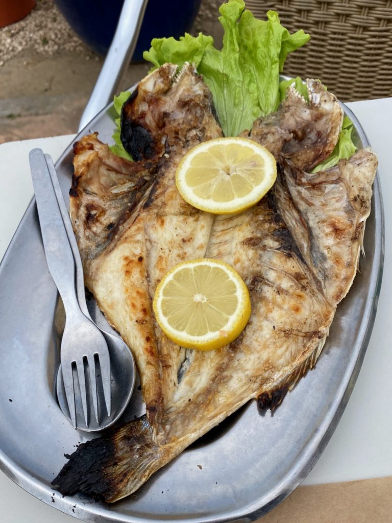 Next stop: the Algarve, along the southern coast. Portuguese drivers are insane—they might go well below the speed limit or far above it. And if they want you to let them pass, they come right up your bumper and hover a bit to the left, making it harder to see them. Anyway, taking the Santa Clara 1728 staff’s advice, we found a no-frills seafood restaurant overlooking the beach, A Ilha. And continuing on, we were delighted by the large seabirds nesting atop electric poles and the smaller birds that seem to nest inside those nests.