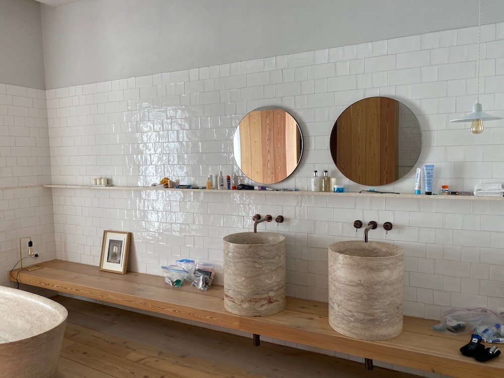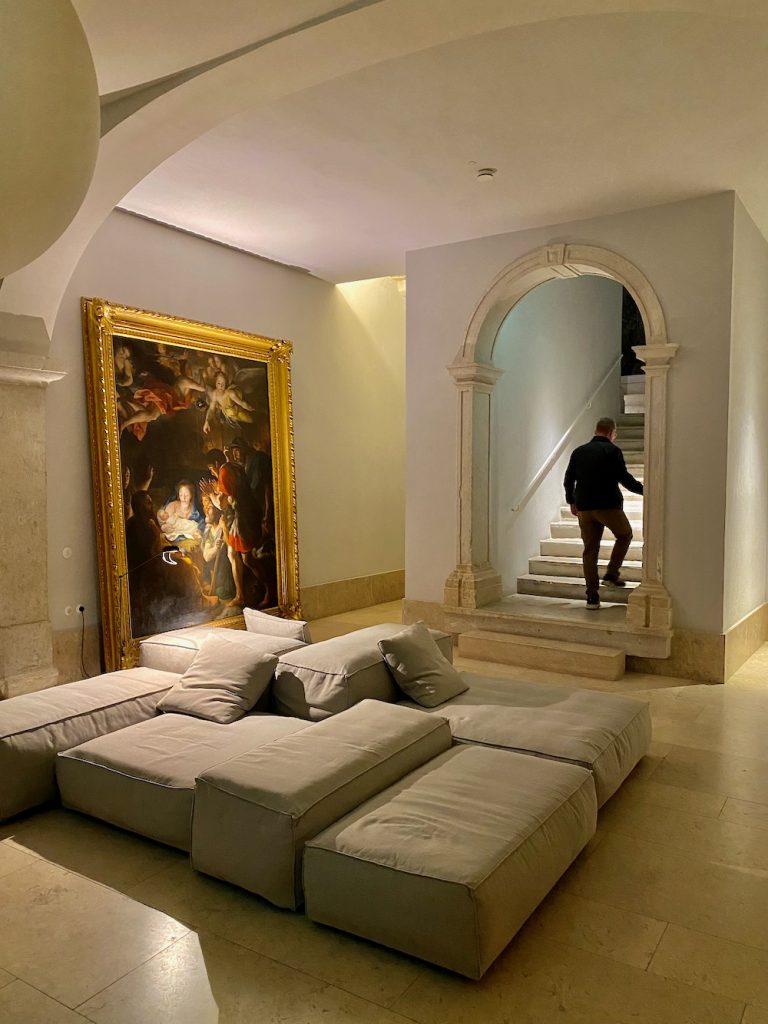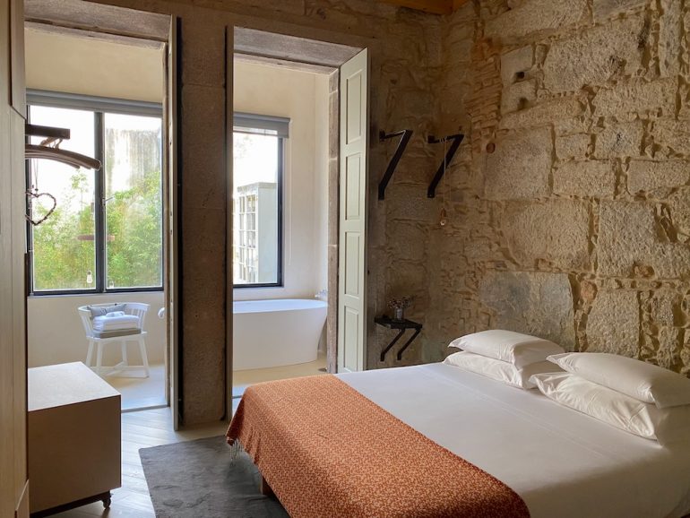 We started in Lisbon, staying at Santa Clara 1728, part of the Silent Living group. It’s an 18th-century building that an airline pilot turned into a six-suite hotel, reserving the top floor for himself and his family. The whole place is both high-style and minimal, and the staff was unfailingly friendly and helpful. The only significant caveats: 1) the lighting in the bathroom is meager—the two fixtures visible in the photo are the only ones that illuminate the vanity; 2) our room was just below the owners’ place, and we could hear their kids running to and fro—so if silent living is going to be more than a goal, the floors need rugs.