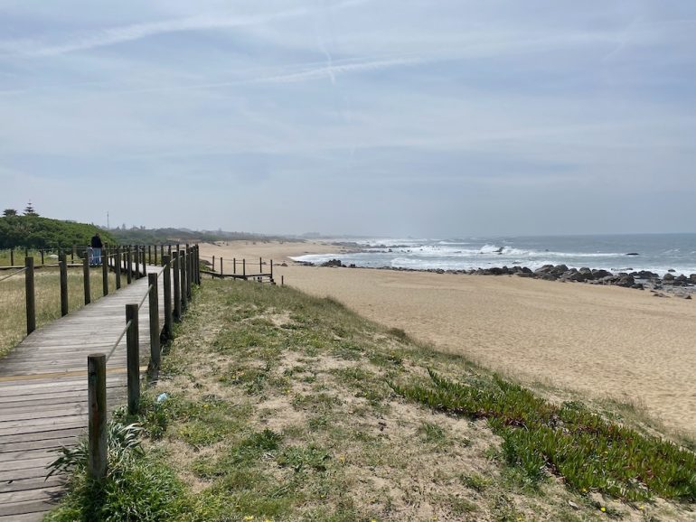 That said, we spent as little time as possible in the old town, despite its physical charm. One afternoon, we explored the upscale Foz neighborhood. (That tram comes within inches of the restaurant parklet.) And on our last day, which happened to be Easter, we went for a mammoth walk. We passed through parts of Porto I’m sure no tourist has ever seen, but once we got to the beach neighborhood of Miramar, the long boardwalk proved a welcome break from sidewalks and crowds. And in this part of Portugal, people leave flowers and leaves on their doorstep as a sign they welcome the local religious procession.