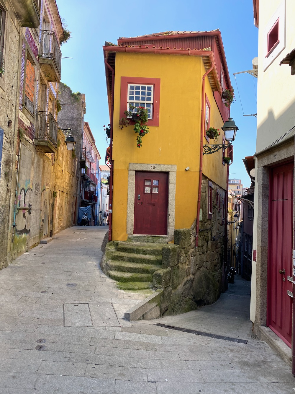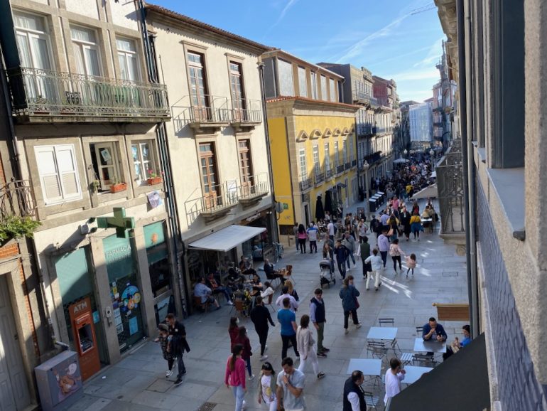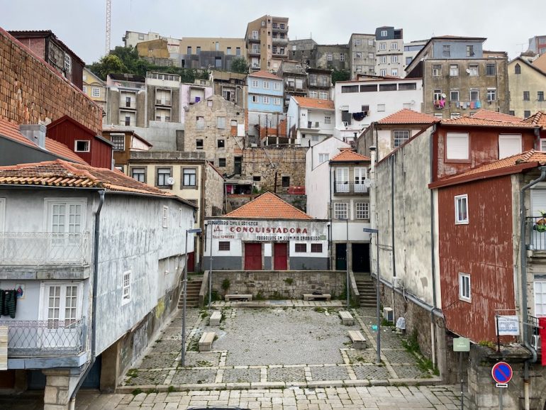 Last stop! Portugal’s second city, Porto. We stayed at the apartment annex of a hotel called Armazém. For reasons known only to the architect, our unit had four levels, with the living room at the bottom and, thankfully, the bedroom at the top, toward the rear of the building. We were in town over Easter weekend, along with half of Spain, and the hotel is on a pedestrian-only thoroughfare popular with tourists (and the occasional busking marching band).