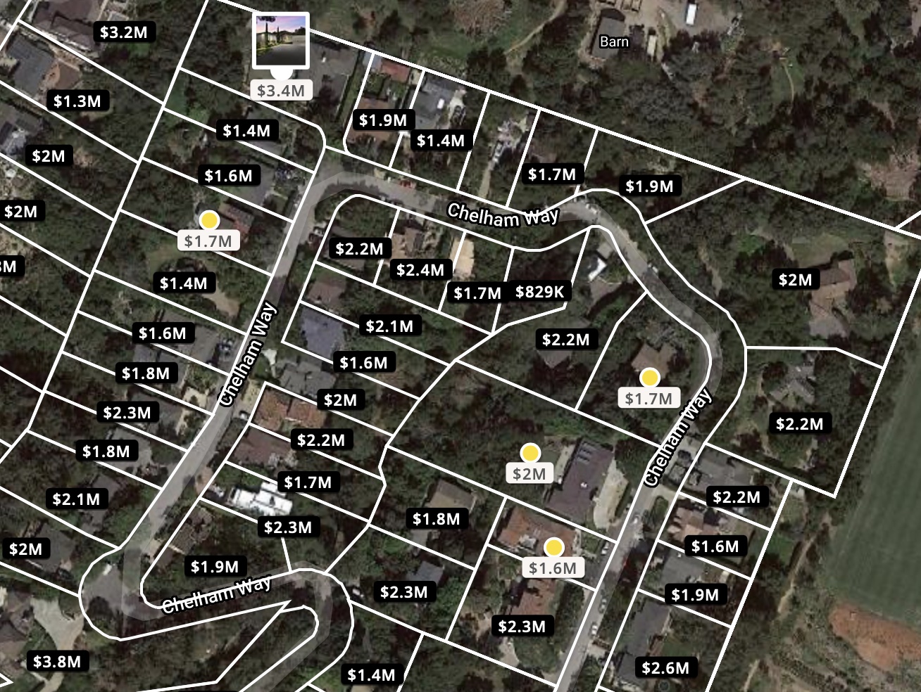 The 1950 house at 792 Chelham Way ($3.499 million) is priced as if there’s no work to be done, when the upstairs needs new everything. The lower level has already been redone, and while it’s on the dark side, it does offer a glimpse of the potential elsewhere. Still, do you really want to be in for $4+ million on Chelham Way…?